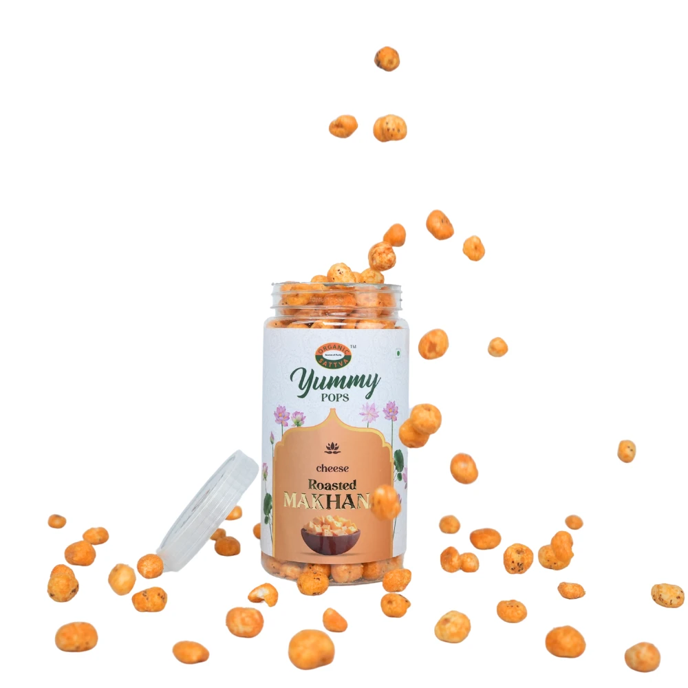 Organic Sattva Cheese Flavoured Makhana is a crunchy roasted makhana snack made from fox nuts, coated with mild cheesy flavour for easy munching and a smarter swap for fried snacks.