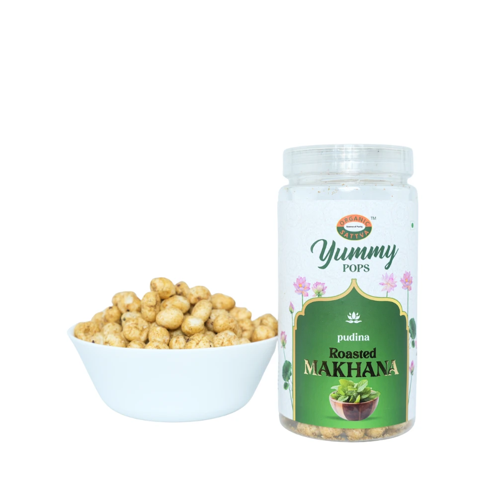 Pudina Flavoured makhana is a pudina or mint-flavored roasted fox nuts, which are perfect for munching.